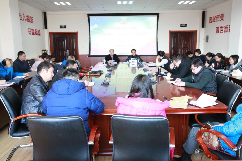 逄奉辉在会上总结了学院扎实推进主题教育的基本情况及取得的积极进展和明显成效,明确了进一步巩固深化主题教育成果,推进学院高质量发展的方向。他说,主题教育开展以来,学院认真贯彻落实党中央决策部署和省委、学校党委工作安排,在第九指导组指导和学院党委领导下,全院动员、全员覆盖,激发党支部工作积极性与创造力,加强理论学习,上好“必修课”,开好“选修课”,做好调研与检视问题工作,把短板显出来,把问题摸出来,把症结找出来,在理论联系实际的过程中寻找解决问题的办法措施,抓好整改落实,将即知即改、立行立改与加强制度建设与建立长效机制结合起来,确保主题教育取得实实在在的成效。经过主题教育,学院干部、教师理论水平和思想认识进一步提升,守初心、担使命的思想自觉和行动自觉不断增强,师生最关心最直接最现实的问题得到化解,干事创业、担当作为的精气神进一步提振,廉洁自律意识进一步增强,政治生态向好养成。在指出存在的问题基础上,他强调,全院干部教师要把践行初心使命同贯彻落实习近平总书记关于思想政治理论课的重要批示、指示和重要论述结合起来,同党中央国务院、中宣部教育部对思想政治理论课的相关要求结合起来,同贯彻省委“担当作为、狠抓落实”要求结合起来,同贯彻落实学校第三次党代会精神结合起来,明确责任,细化措施,推动学院高质量发展再上新台阶。他号召,全院党员干部、思政课教师,要以身作则、躬行示范,进一步增强“四个意识”、坚定“四个自信”、做到“两个维护”,以习近平新时代中国特色社会主义思想为指引,坚持问题导向和成果导向,树立市场化理念和平台思维、效益思维,树立法治化理念和制度思维、法治思维,树立整体化理念和大局思维、联系思维,树立高精尖理念和品牌思维、特色思维,围绕中办国办、中宣部教育部有关《意见》《标准》等,全面贯彻学校第三次党代会提出的目标任务和思路举措,严格执行学院“十三五”发展规划和中长期发展规划,科学谋划和制订学院“十四五”发展规划,对标对表,只争朝夕,不负韶华,多出高水平成果、精品成果、特色成果,为建设省内先进、国内有较大影响的省重点完美体育官方网站而努力奋斗!