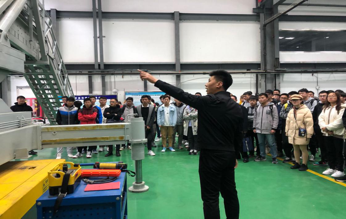 实践教学团队一行首先参观了青岛古镇口军民融合创新示范区。在技术装备保障中心,了解了军民融合技术装备保障机制与新模式的探索;在岸基维修维保厂房,参观了为军方HM研制的舰船智能升降舷梯的展示;在3D打印共享服务中心,参观了军民融合区3D打印项目展示。通过参观展览,学生们了解了军民融合发展的内涵以及军民融合创新示范区建设取得的进展。