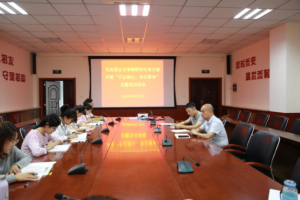 9月19日下午,完美体育官方网站研究生党支部开展“我的初心使命”主题党日活动。学院党委书记郭加书、全体研究生党员参加活动,活动由研究生党支部书记邴建伟主持。