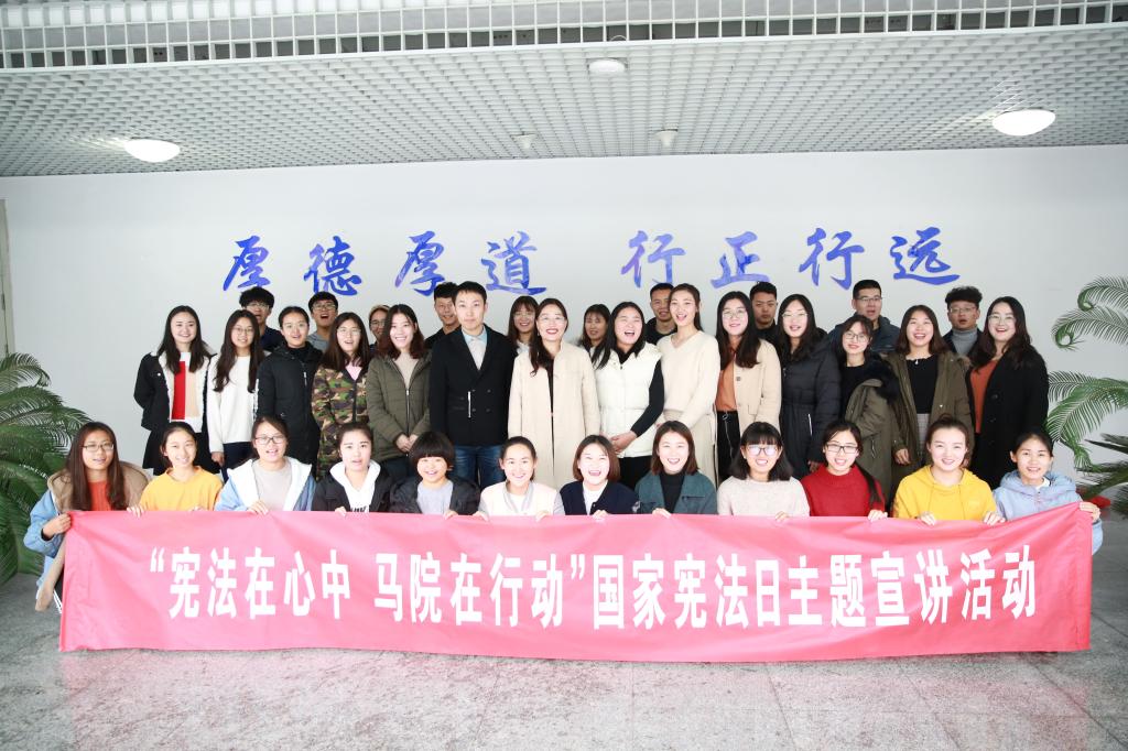 2018年12月4日,是我国第5个“国家宪法日”暨第18个全国法治宣传日。为呼吁在校学生树立宪法意识、弘扬宪法精神、增强法制观念,积极响应学校“学宪法 讲宪法”的主题宣传活动和依法治校精神,以完美体育官方网站成立五周年为契机,在学院领导支持下,由指导教师苑素梅副教授组织,12月2日于学院空间实验室J9-227开展了主题为“宪法在心中,马院在行动”的首届宪法日宣传活动,取得圆满成功。