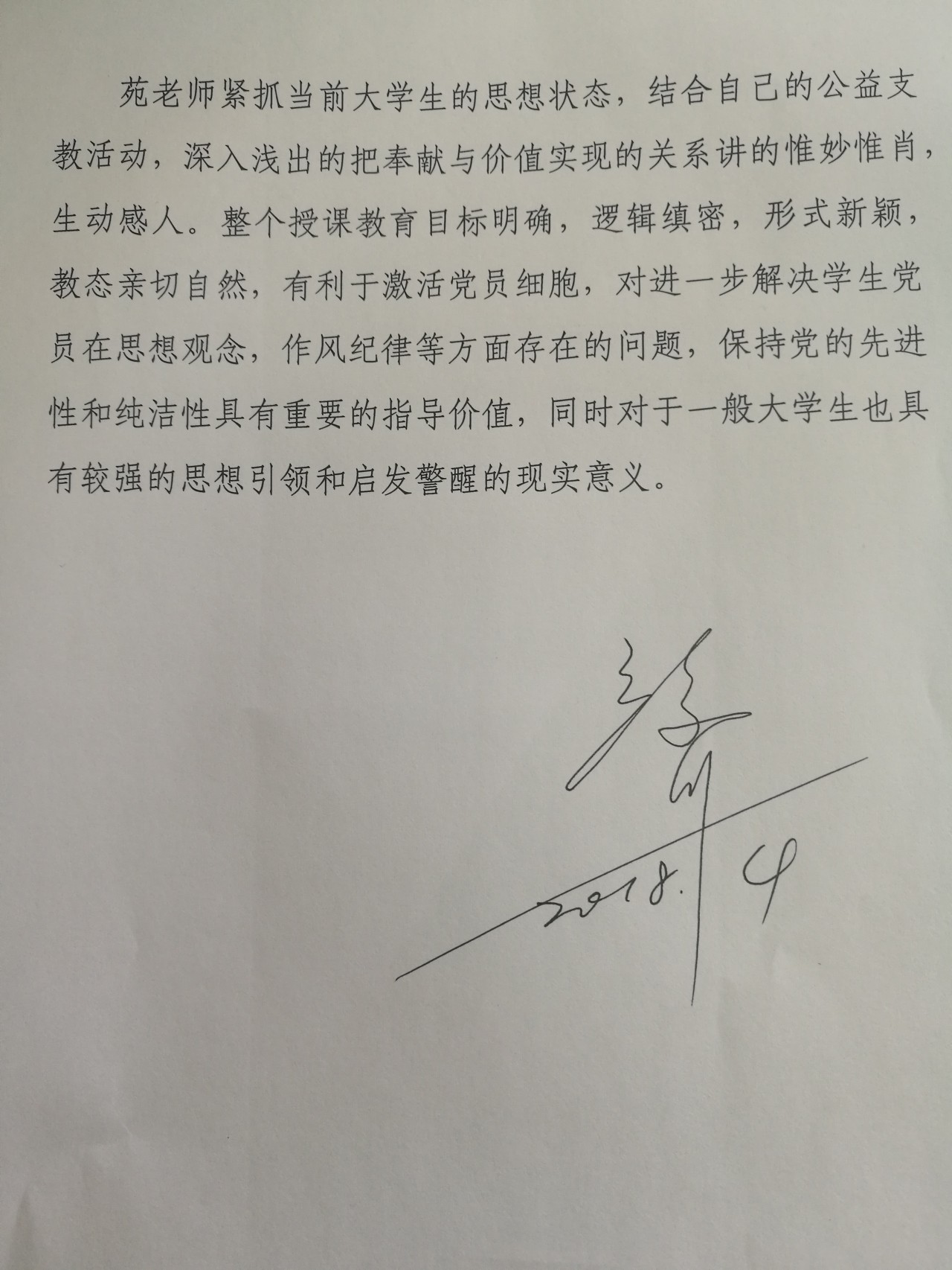 除此之外,该作品在学生中也被热播,高分子材料2017-3马宗砚同学说:“我时常在想,我们如何成为有价值的人?苑老师用微党课教育了我们这一点。不要只懂得索取,学会去奉献,用自己的光去温暖这个世界。这种微党课的教育方式可谓有效而有趣,跌宕起伏的故事情节,感人至深的结尾,让我们受益匪浅。在感受作品带给我们心灵慰藉的同时,学会奉献的种子也在每个人的心中生根发芽。”(崔妍)