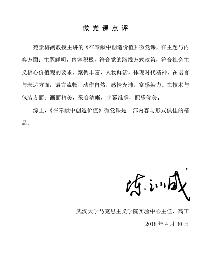 该作品引起了广泛的影响,得到一些著名专家学者的特别肯定,中共十九大代表南京航空航天大学完美体育官方网站党支部书记徐川;国内知名党建慕课制作专家,武汉大学完美体育官方网站实验中心主任,WHUMOOC工作室主任,“武大版”思政MOOC建设项目总协调人,武汉大学“珞珈在线”MOOC平台建设技术支持专家陈训威发来专业评价: