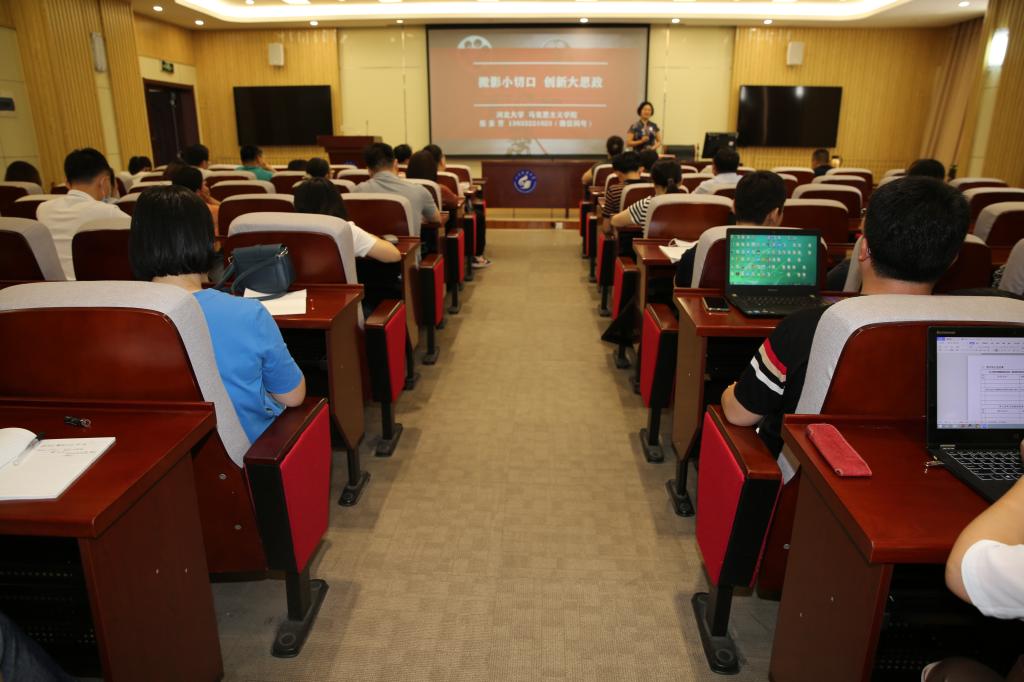 柴素芳为全体教师奉献了一场以《微影小切口创新大思政》为题的内容丰富、形式新颖、声情并茂的精彩讲座。她从河北大学完美体育官方网站探索思政课实践教学入手,以思政微电影创作为主题,回顾了近10年的微电影思政课实践教学探索、发展历程,形成“一份初心确立改革定位、一部影片点缀星星之火、二进形成改革体系、四项要求确保教学质量、九多特色见证改革成果”的“11249”思政课实践教学成果。她领导的教学团队采取“滴灌式”的实践教学方式,将“营养丰富”的思政内容之“水”,通过微电影之“渠”,滴入学生心灵之“田”,在润物无声中教育引导学生健康成长。