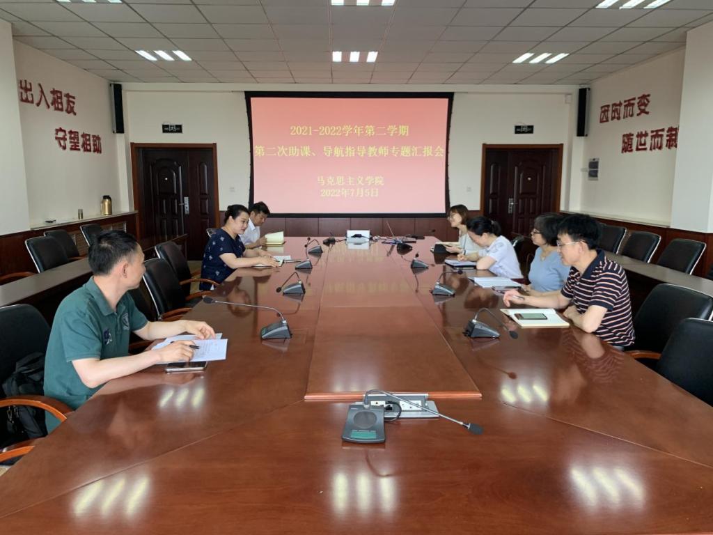 7月5日下午,学院在J9-223举行2021—2022学年第二学期第二次助课、导航指导教师专题汇报会。会议由副院长常春主持,孙绪民、王忠春、周月、杨立蛟、徐玉明、史璇等指导教师参加。