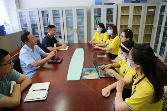 理论宣讲结束后,实践团队成员同东营市环境局东营经济技术开发区分局局长罗红波、环境信息与监控中心主任尹艳峰、综合科科长石溢,进行了关于黄河三角洲流域生态环境保护面对面的座谈会,深入了解了东营黄河流域生态保护和高质量发展情况。