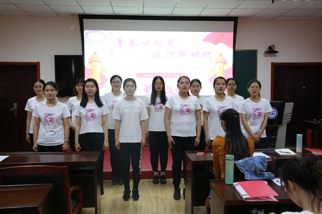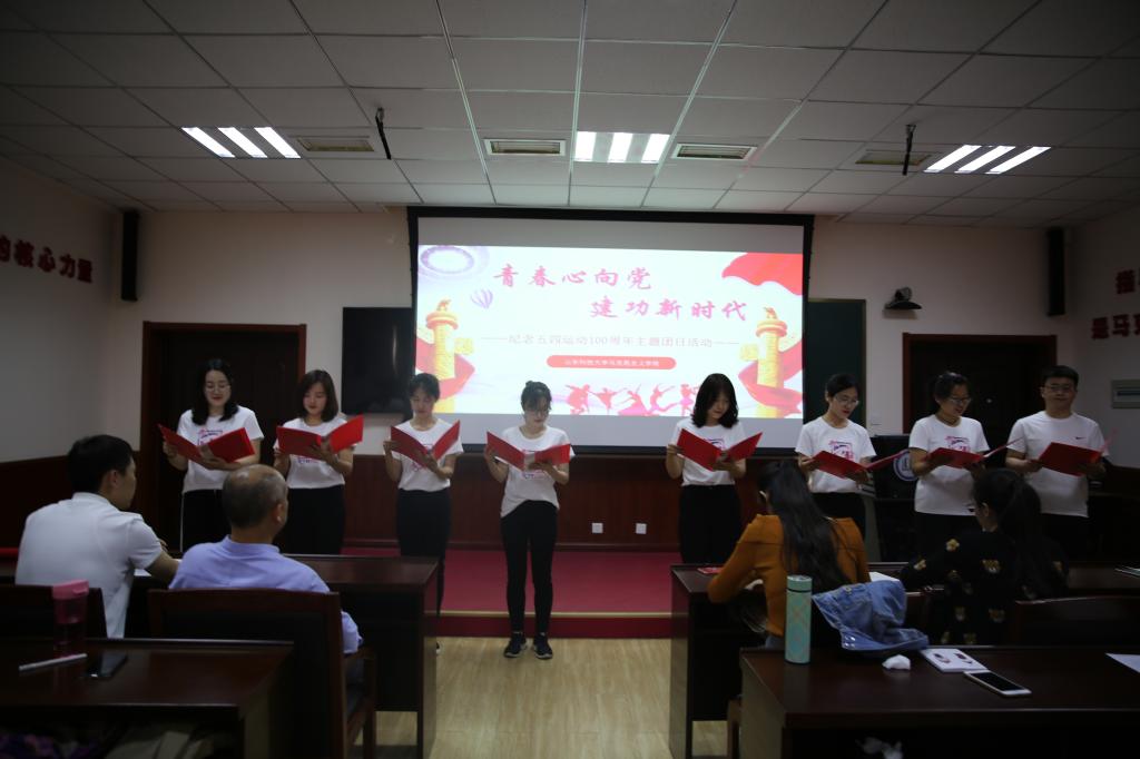 本次团日活动共分为三个篇章:第一篇章“感悟历史”。庄严的国歌拉开了活动的序幕。邴建伟为团日活动致辞,他回顾了“五四运动”百年历史,强调了学校第三次党代会提出的人才培养要求,肯定了本次主题团日活动的重要意义。就办好本次主题团日活动提出三点希望:一是初心不改、青春向党,号召同学们以实际行动紧密围绕在以习近平同志为核心的党中央周围;二是认真参与、提高认识,激发同学们对马克思主义理论的学习热情;三是以德立身、以德立学,要不畏艰苦、立德修身,追求真理、立德治学。研究生观看了爱国主义影片《建党伟业》片段,重温了炽热的历史,感悟了浓烈的爱国情。第二篇章“把握现在”。通过知识竞答的形式对五四运动知识进行巩固学习,答题的活跃氛围将现场气氛推向高潮; 2017、2018级研究生分别进行了《筑梦青春一百年,奋进建功新时代》的诗歌朗诵和《明天会更好》的大合唱,每位同学都饱含激情,表达对祖国的感恩与祝福。第三篇章“开拓未来”。学生代表宋丹丹同学就“青年应该怎样弘扬五四精神”发起了“弘扬五四精神 争当逐梦青年”的倡议,呼吁当代青年要牢固树立青春理想,始终保持青春活力,坚持不懈青春奋斗。