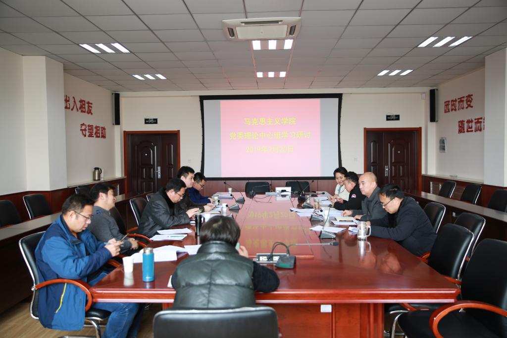 2019年2月20日下午,在完美体育官方网站J9-223会议室,组织了学院党委理论学习中心组集体学习活动,会议由党委书记郭加书主持,院领导班子成员及各教研部党支部书记和主任参加学习。
